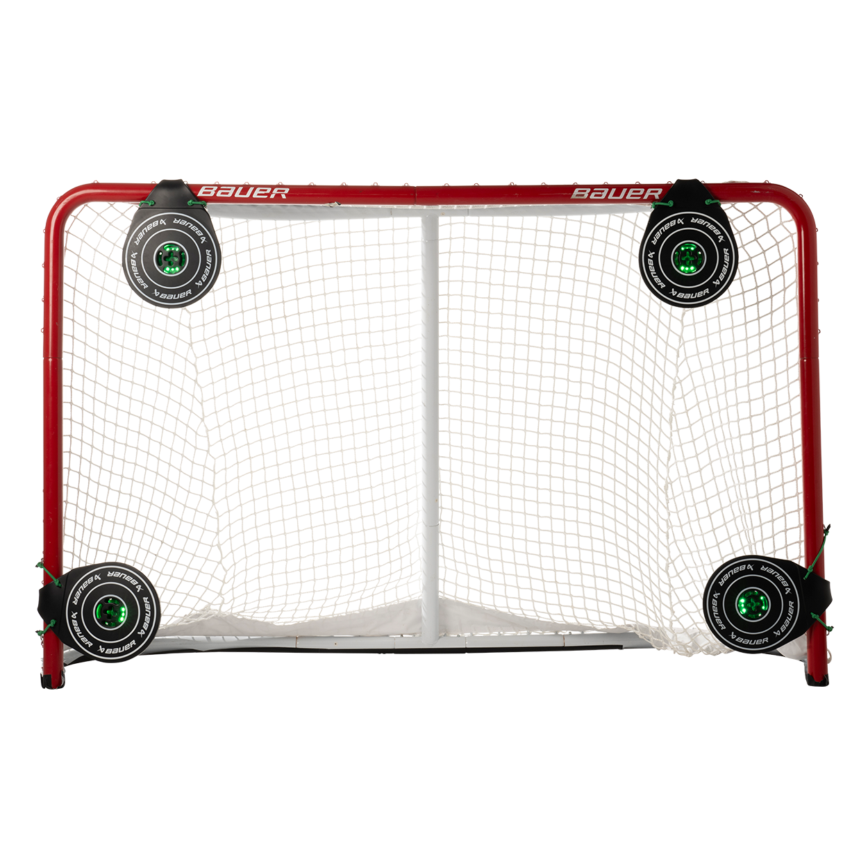 Light up the net. These electronic and interactive targets pair with the BAUER REACTOR Digital Scoreboard and are designed to help simulate different shooting scenarios with built in games, modes, and levels. Featuring integrated lights, sensors, and sounds, you get instant visual and audio feedback after every successful shot.